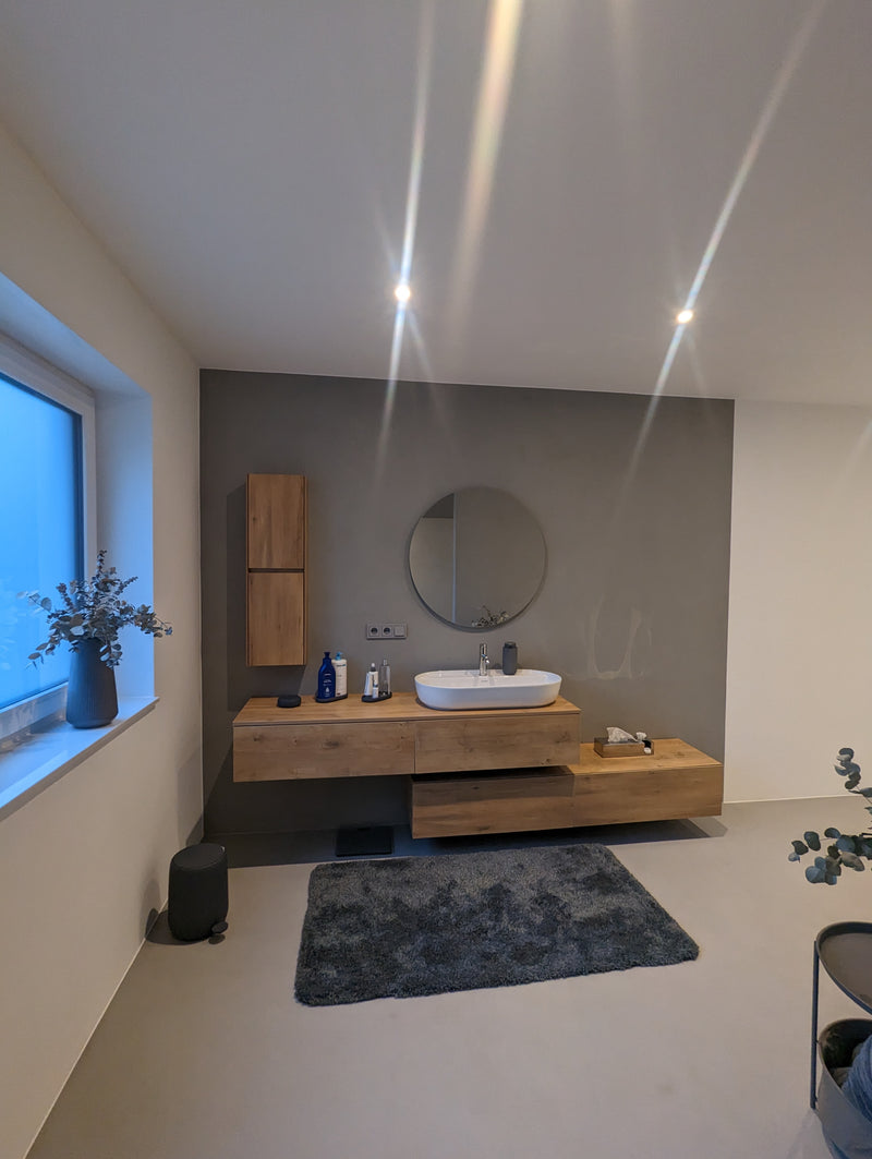 Sein zweites Fachgebiet ist die kunstvolle und individuelle Wandgestaltung, sei es in Betonoptik oder mit natürlichen Marmor- oder Kalkputzen. Da sich diese Art der Wandgestaltung wunderbar mit individuellen und hochwertigen Möbeln verbinden lässt, sind wir froh ihn als Partner an der Seite zu haben und ihn dir hier vorstellen zu dürfen. Auf Wunsch, kann er dir beispielsweise auch die Möbelfronten passend zu der Wandgestaltung spachteln - wie du siehst, ist das Limit eher deine Fantasie als die Machbarkeit 😉